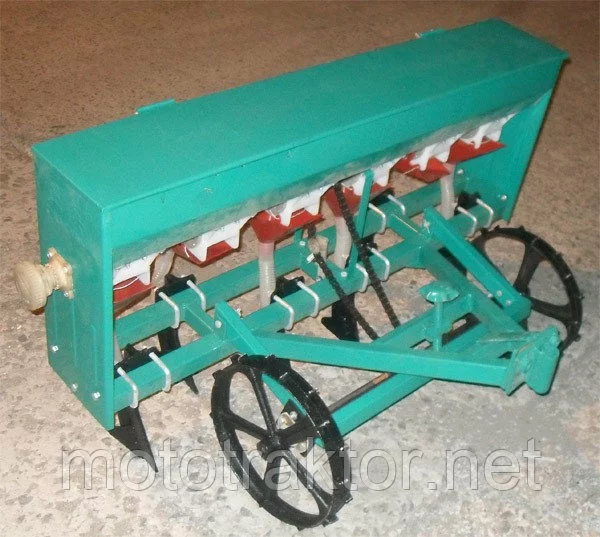Сеялки зернотуковые 2BJ, 2BJ-F 5-, 6-, 7-, 8-и рядные для мотоблоков предназначены для посева семян зерновых культур (пшеница, рожь, ячмень, овес), бобовых культур (горох, фасоль, соя, чечевица, бобы) и льна). Модификация 2BJ-F имеет бункер для удобрения. Сеялка может быть использована для посева семян других культур, близких к зерновым по размерам семян и нормам высева (гречиха, просо, сорго).