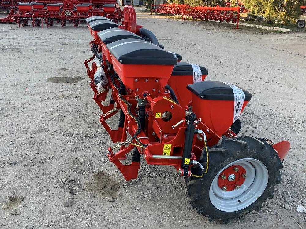 Универсальная пневматическая сеялка, предназначена для точного (пунктирного) высева калиброванных семян: кукурузы, подсолнечника, сорго, сои, а также семян кормовых бобов: сои, фасоли и люпина с одновременным, раздельным от семян, внесением гранулированных минеральных удобрений и прикатыванием почвы в рядах.