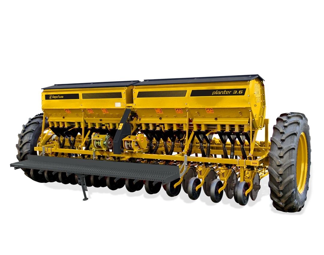Planter 3.6М – зерновая сеялка, разработанная для рядового посева семян зерновых (пшеница, рожь, ячмень, овес), зернобобовых культур (горох, фасоль, соя, чечевица, бобы, чина, нут, люпин), мелко семенных культур (люцерна, рапс, просо, клевер) с одновременным внесением минеральных удобрений.