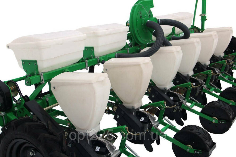 Универсальная пневматическая сеялка, предназначенная для точного высева калиброванных семян: кукурузы подсолнечника,сои, а также семян кормовых бобов, фасоли, люпина с одновременным, раздельным от семян внесением минеральных удобрений