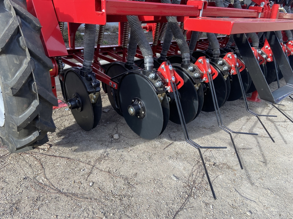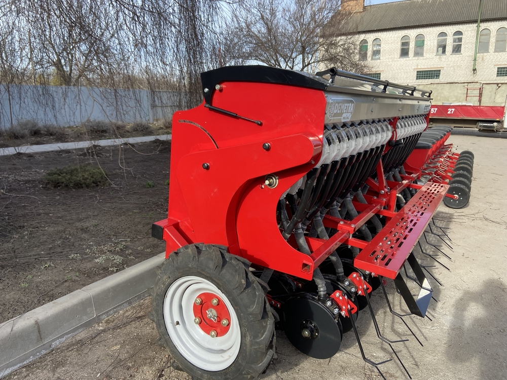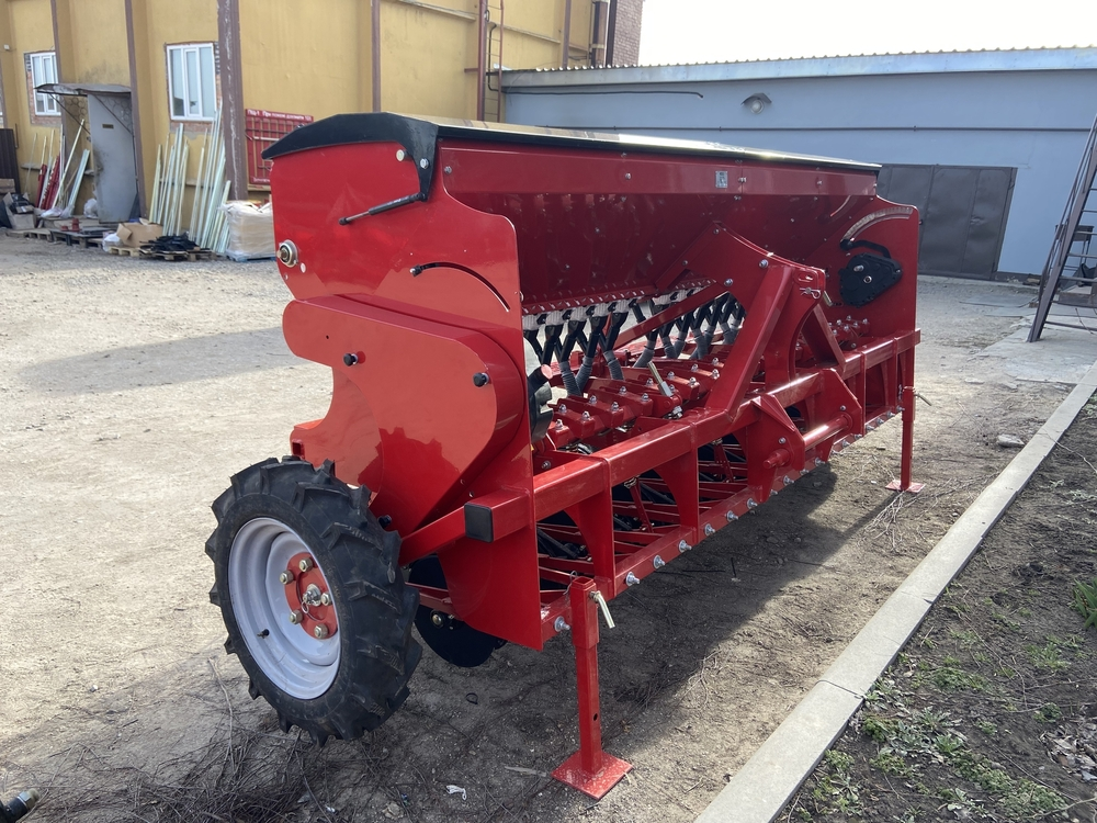 Сеялка зернотуковая "ДЕМЕТРА МИНИ" 1500V, c бесступенчатой коробкой передач(вариатор), предназначена для рядового посева зерновых культур (пшеницы, ячменя, ржи, овса), зернобобовых (соя, горох, фасоль, нут, чечевица, бобы), мелкосемянных культур (рапс, горчица, лен) сыпучих и средне сыпучих семян трав с одновременным внесением минеральных удобрений.