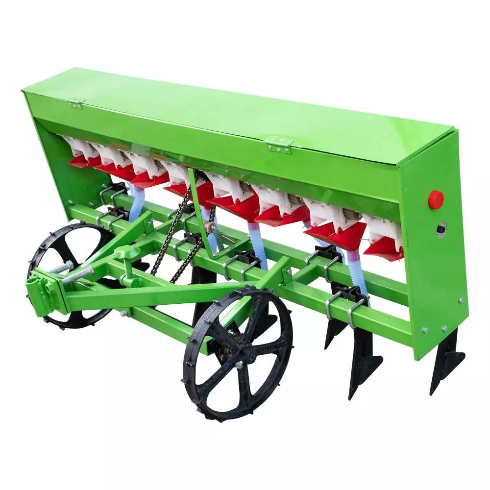 Особливості Для полегшення трудомісткого процесу посіву насіння мотоблок або мототрактор допоможе не тільки якісно обробити і підготувати грунт, а й на багато прискорити процес посіву зернових культур при використанні спеціалізованої сівалки. Сівалки серії ВЗ можуть використовуватися для посіву різних зернових (жито, пшениця, ячмінь, овес), бобових культур (горох, квасоля, соя, сочевиця) і льону. Також близьких до зернових за розміром насіння і нормам висіву (гречка, просо, сорго, люцерна). Великий загальний бункер для насіння значно полегшує завантаження насіння. Проста конструкція і якість виготовлення забезпечує ефективну і надійну роботу. Ширина обробки 1380 мм. Тип сошника Анкерний. без внесення добрив; Ємність бункера 160 л.