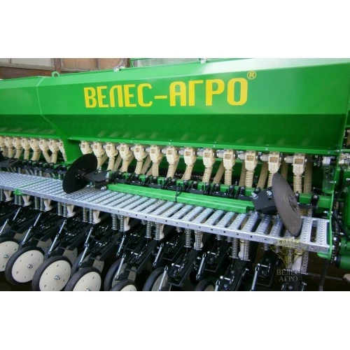 Для формирования идеального семенного ложе применена конструкция смещенного размещения дисков сошника, также предохраняющая его от засорения камнями. При этом первый диск прорезает ровную линию сева, режет пожнивные остатки, а второй разрыхляет почву и подготавливает семенное ложе. Заданная глубина посева семян достигается за счет механизма прижимных пружин, которые кроме регулировки глубины позволяют механизму сошника копировать поверхность засеваемой площади. Расположенное за сошником прикатывающе-регулирующее колесо поддерживает четкое ведение глубины заделки семян, обеспечивает контакт посевного материала с почвой, необходимый для оптимального поступления влаги по капиллярам, равномерного формирования корневой системы и всхожести.