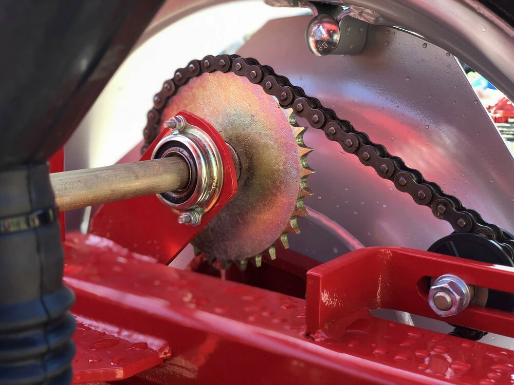 Настройка нормы внесения удобрений производится рукояткой.Редуктор имеет три основные скорости, которые переключаются с помощью рычага, кассета заменена на открытую зубчатую передачу. В редукторах установлены механически обработанные стальные шестерни, что повышает надежность их работы.