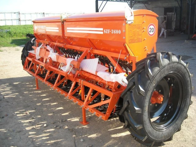 Сеялка зерновая СЗФ-3600 - предназначена для рядового посева (пшеницы, ржи, ячменя, овса), зернобобовых (горох, фасоль, соя, нут), мелкосемянных культур (рапс, горчица, лен) сыпучих и средне сыпучих семян трав с одновременным внесением минеральных удобрений.