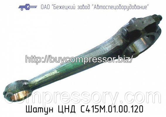 Шатун НД (ЦНД) С415М.01.00.120 , компрессора С415М, С416М, К5, К2, К22, КВ15, К20, К30, К33,К6, К31, К3, С415М1, С416М1 производства АО «Бежецкого завода «АСО», устанавливается в цилиндре низкого давления вместе с поршнем , имеет 2 отверстия под вкладыши шатуна и под поршневой палец, в шатуне установлена втулка с внутренним диаметром 28 мм и разбрызгиватель для распыления масла внутри картера компрессора.