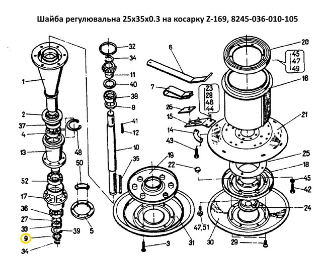 Шайба регулювальна 25х35х0.3 на косарку Z-169, 8245-036-010-105