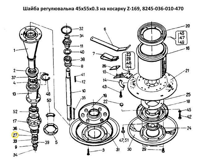 Шайба регулювальна 45х55х0.3 на косарку Z-169, 8245-036-010-470