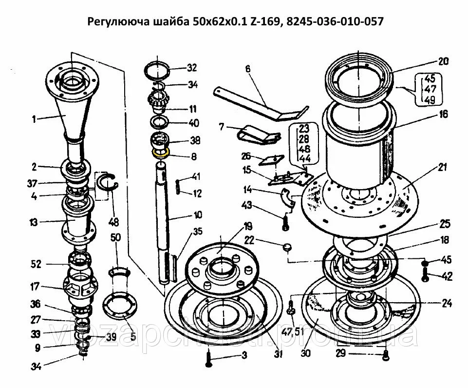 Шайба регулювальна 50х62х0.1 на косарку Z-169, 8245-036-010-057
