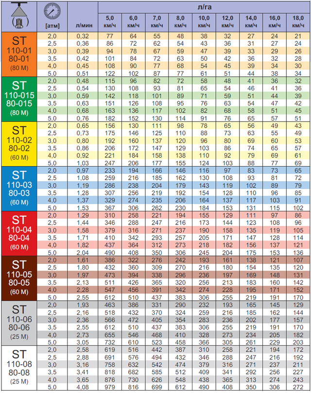 Щелевой распылитель ST-110-01 Германия вылив от 40 - 70 л/га
