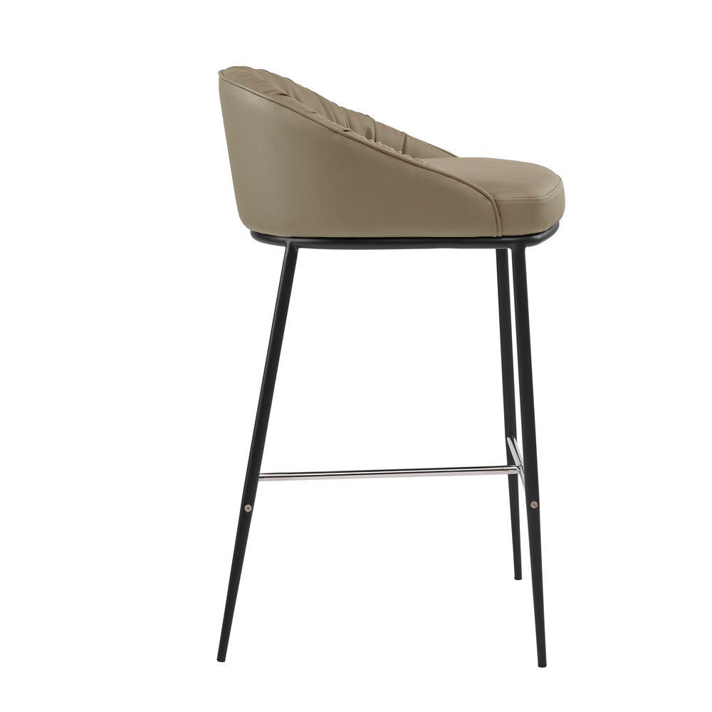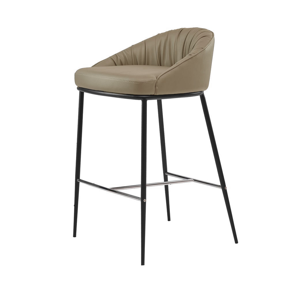 Обзор полубарного стула Sheldon (Шелдон), цвет капучино Полубарный стул Sheldon - шикарный стул для полубарных стоек и кухонных островов, который наверняка станет изюминкой Вашего интерьера. В этой модели сочетаются продуманная эргономика, современный стиль и оригинальный дизайн. Прочный стальной каркас, устойчивые ножки гарантируют его крепкое сложение. Проверенное качество всех материалов - отличная рекомендация к применению не только в жилых интерьерах, но и в ресторанах, кафе, барах, отелях, коворкингах и других пространствах.Универсальный современный стиль стула позволит гармонично вписать его в любой интерьер. С помощью стульев этого модельного ряда можно кардинально преобразить пространство и создать роскошную атмосферу.Посадочная высота полубарного стула составляет 67 см. Рекомендуемая высота стола, стойки или острова - 90-100 см.Обивка: экокожа Обивка выполнена из искусственной экокожи (ПУ-кожа). Экокожа специально предназначена для использования в мебельной промышленности, образец обивочного материала прошёл все необходимые тесты на износоустойчивость (не менее 40 тыс циклов истирания по Мартиндейлу). Подходит для ежедневного использования дома, а также для коммерческого применения в заведениях сегмента HoReCa.Спинка декорирована стяжками. Цвет обивки - капучино.