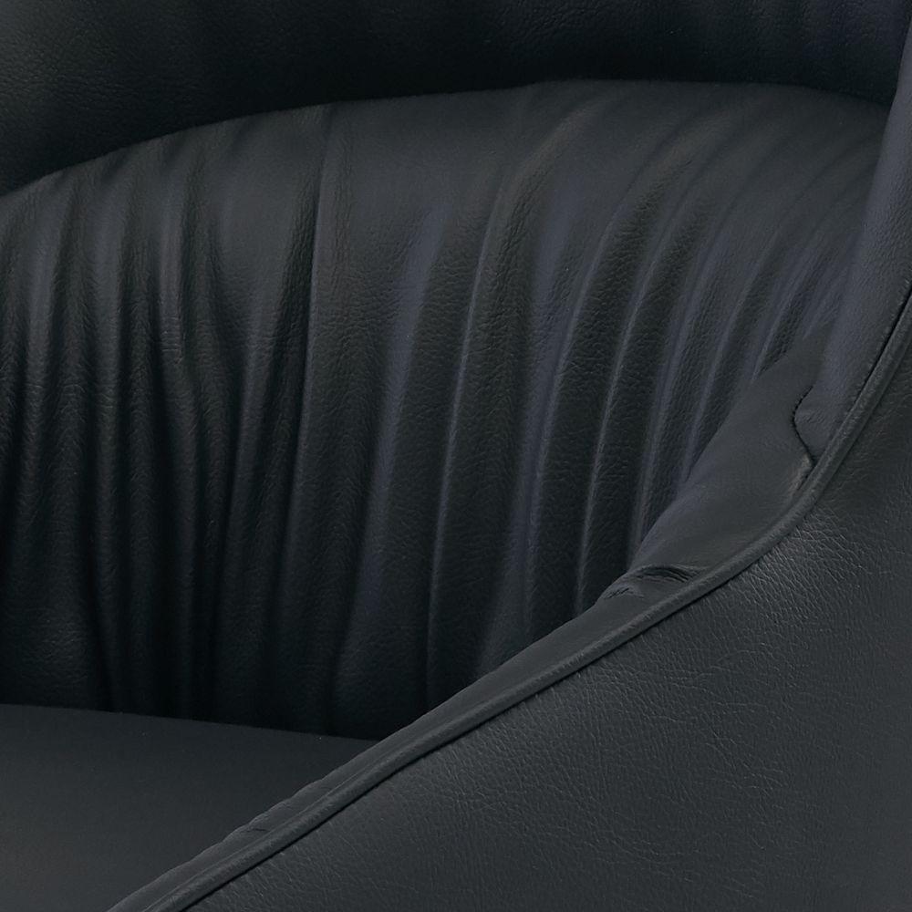 Спинка декорирована стяжками. Цвет обивки - чёрный.