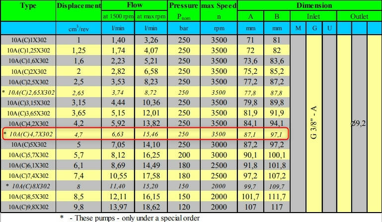 Характеристики Hydro-pack 10C4,7X302