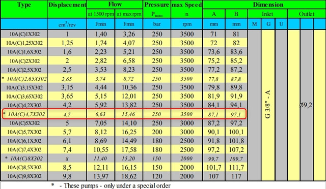 Расход:  6,63 л/мин & 1500об/мин