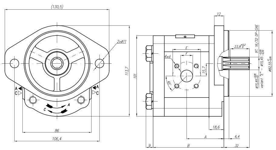 Шестеренчатый  гидравлический насос Hydro-pack 20A(C)16X104 (20A16X104,левый 20C16X104 правый) (серия 20)  отлично взаимодействует со всеми видами смазывающих жидкостей и подойдет для установки на различные виды специальной техники, среди которых коммунальная, с/х, строительно-дорожная.