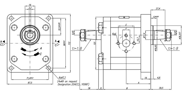 Входное отверстие: E - 39,7, F - 19, d - M8-6H