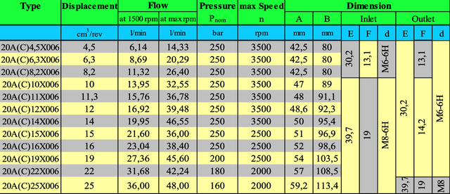 Шестеренный (шестерной) насос 20A(C)25X006 (20A25X006 левый, 20C25X006 правый) Hydro-Pack (группа 20)  широко применяются в промышленной гидравлике, а также устанавливаются в мини и микростанции, они обеспечивают сравнительно высокие давления и небольшие расходы, отличаются стабильностью характеристик и высокой долговечностью.