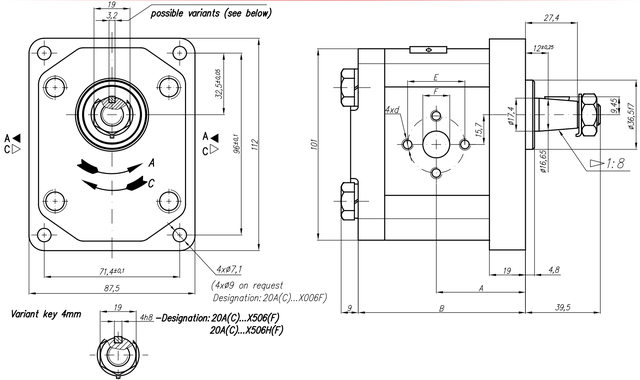 Гидравлический шестеренный насос Hydro-pack 20С28X006F группы 20, с объемом 28 см3/об, имеет правое вращение (по часовой стрелке). Подходит к тракторам и другой технике.