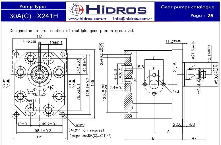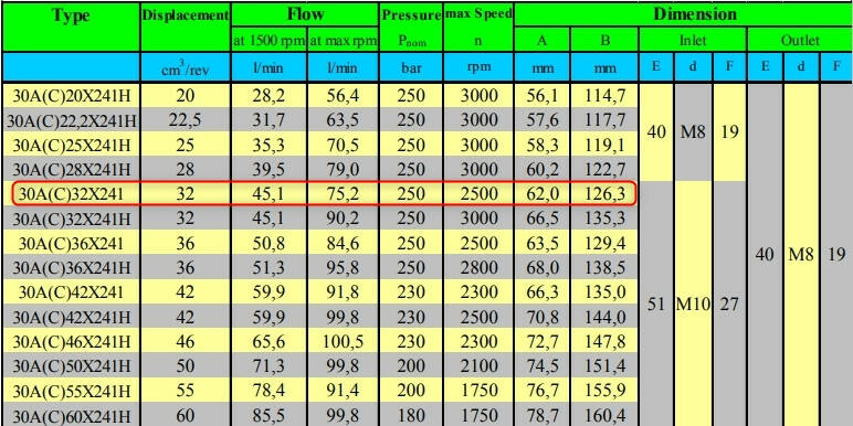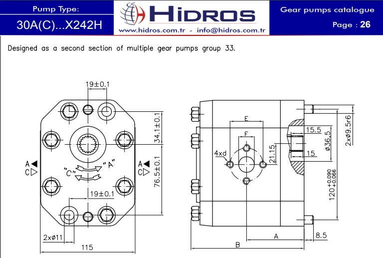 Гидравлический шестеренный насос Hydro-pack 33A32X241/32X242 группы 30, с объемом 32+32 см3/об, имеет левое вращение (против часовой стрелки). Применяется для установки на трактор.