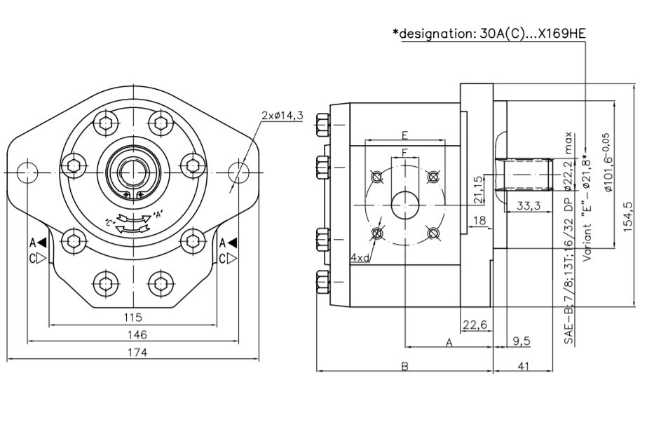 Шестеренчатый (шестерной) гидравлический насос Hydro-pack 30C32X169HE (серия 30)