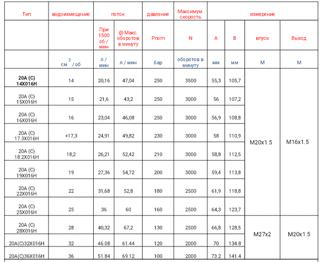 • Водоизмещение: 25 см³/об