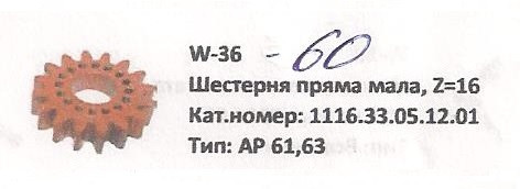 Шестерня малая Z-16 Welger