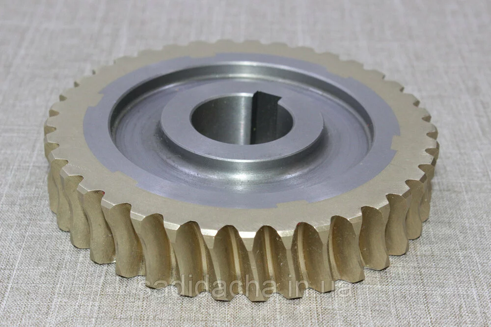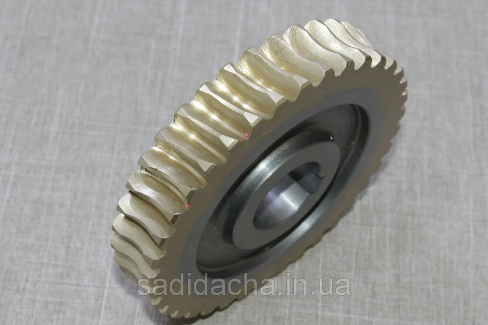 Шестерня косозубая червячного редуктора под шпонку для двухроторной затирочной машины. Запчасти для затирочных машинок взаимозаменяемы при соответствии размеров.