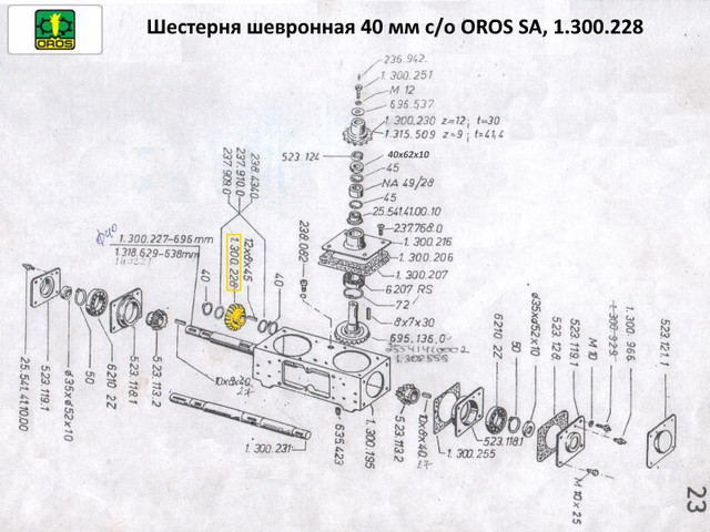1.300.228 . . . . . . . шестерня шевронная 40 мм с/о OROS SA