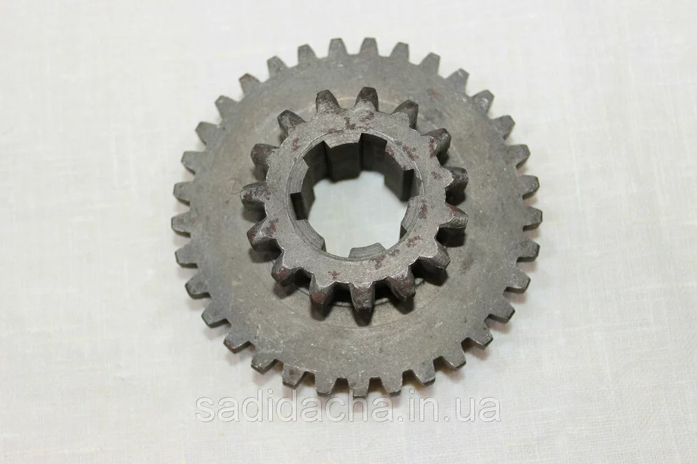 Шестерня трансмиссии (z=15/33, 6 шлиц) , мотокультиватора. Данная деталь взаимозаменяема с мотоблоками других производителей и подходит при соответствии размеров.