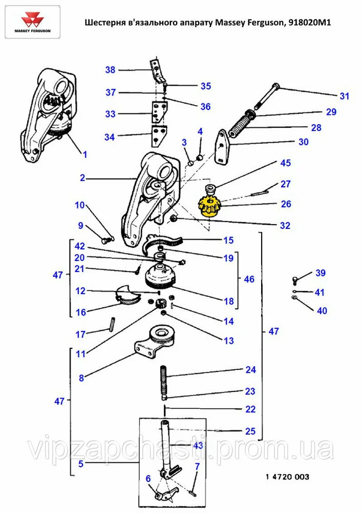 Шестерня вязального аппарата Massey Ferguson, 918020M1