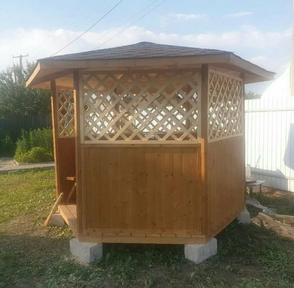 Шестигранная беседка закрытого типа