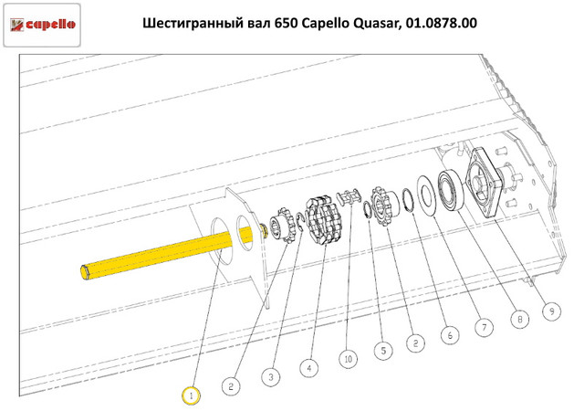 Шестигранный вал l-650 мм кукурузной жатки Capello Quasar, 01.0878.00