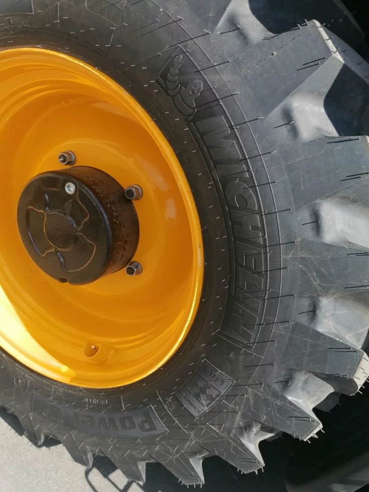 Шины мишелин для погрузочной техники, экскаватора погрузчика, классический рисунок протектора клюшка елка от мишелин. Шина радиальная - влияет на экономию топлива, хорошее пятно контакта из за мягкой боковины колеса. Хорошее сцепление с поверхностью. Хорошо работают как по грунту, так и по твердой поверхности.