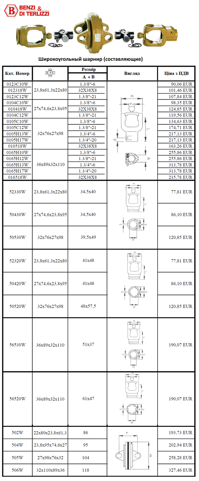 Широкоугольный шарнир карданного вала Benzi Di Terlizzi