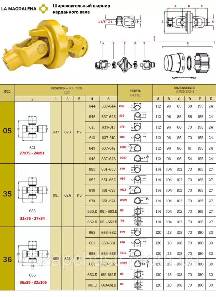Широкоугольный шарнир карданного вала La Magdalena