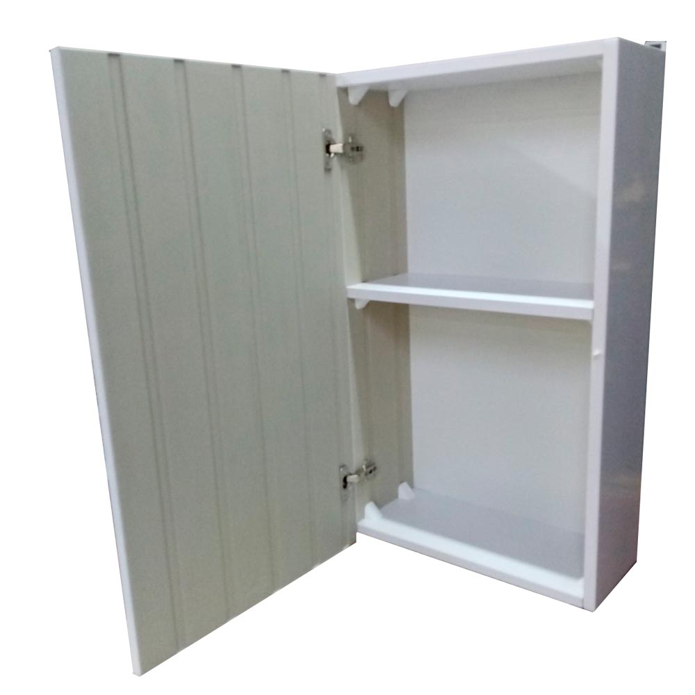 Пластик - это влагостойкий материал, не боится воды и пара при купании, не растрескивается, не рассыхается, не выгорает. Имеет универсальный белый цвет, подойдет в любую, даже в маленькую ванную комнату.Шкаф изготовлен из пластика толщиной 2 см: и корпус, и фасад, и полочка.