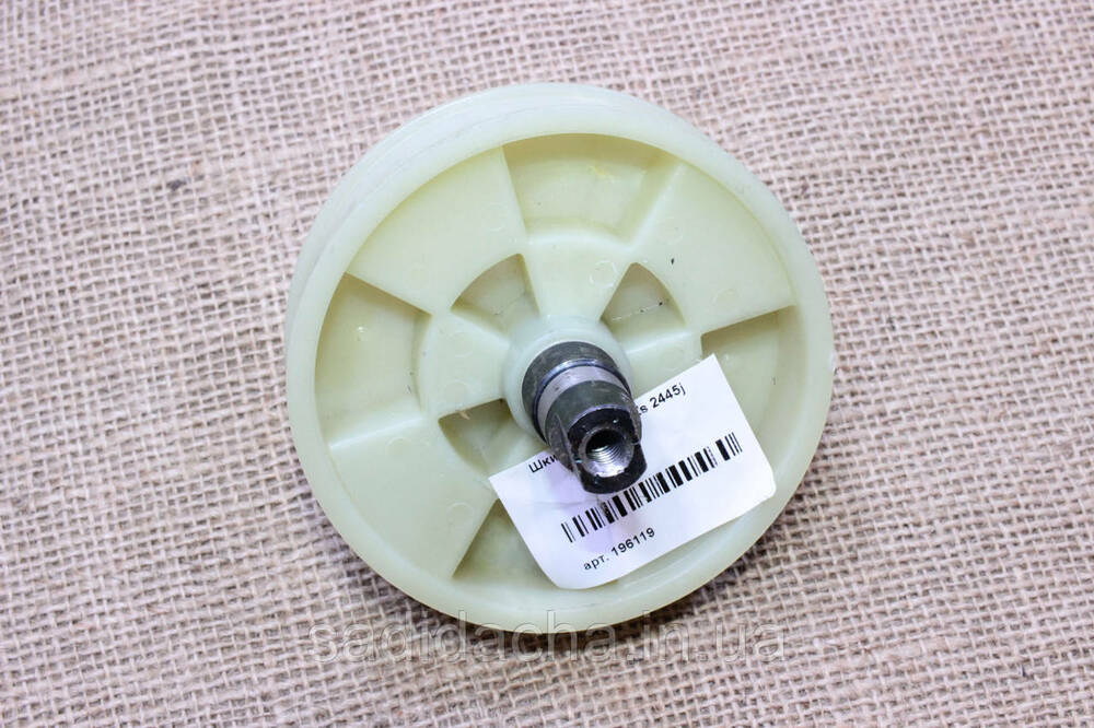 Шкив ведомый пластиковый с металлической втулкой для садового измельчителя. Оригинальное фабричное изделие. шкив ременной под ручейковый ремень.