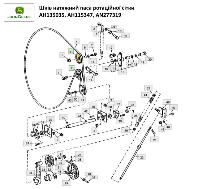 4 - Натяжной шкив 1 № детали : AH135035 Замечания : (SUB AN277319) Эта деталь была заменена
