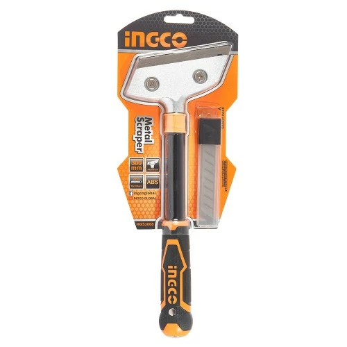 Скребок металевий 300 мм INGCO HGS3008 призначений для очищення плоских поверхонь від забруднень. У комплекті є 6 лез SK5, розмірами 18×100 мм. Ручка, що виготовлена з ABS-пластику й термопластичної гуми, не ковзає, комфортно лежить у руці. Ножова пластина виготовлена з цинкового сплаву. Довжина інструмента 300 мм.