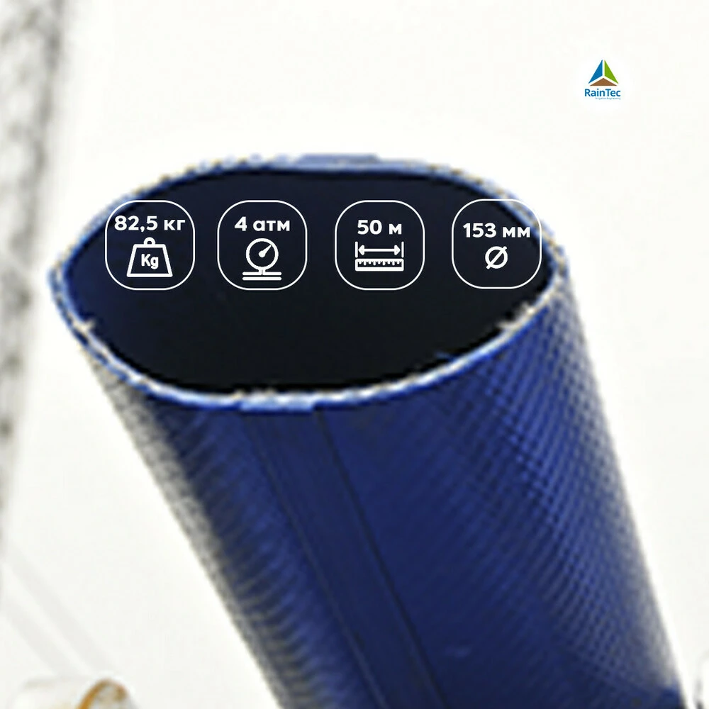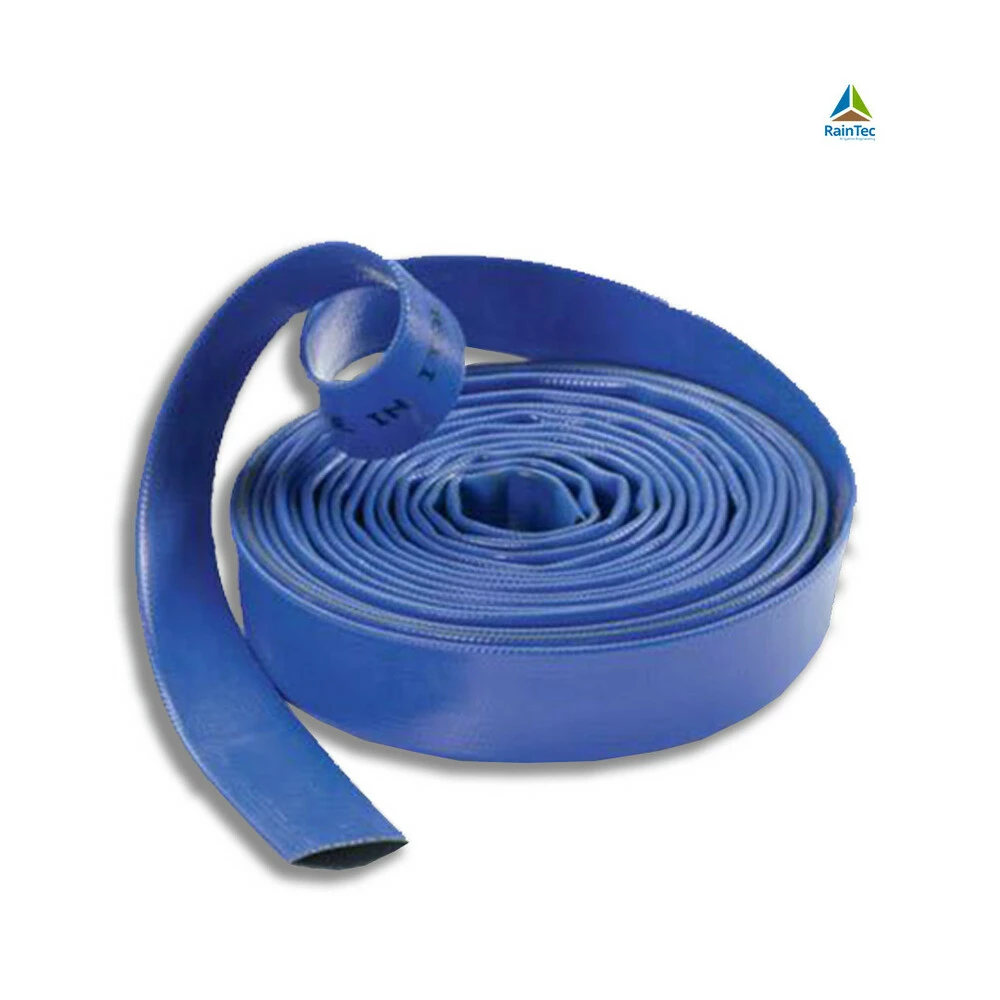 Гибкий армированный ПВХ шланг Lay Flat Monoflat предназначен для систем орошения, для откачки и перекачки воды. Шланг состоит из  специальной подложки из ПВХ/NBR - черный внутри и синий снаружи, с высокопрочным полиэфирным текстильным армированием между ними.