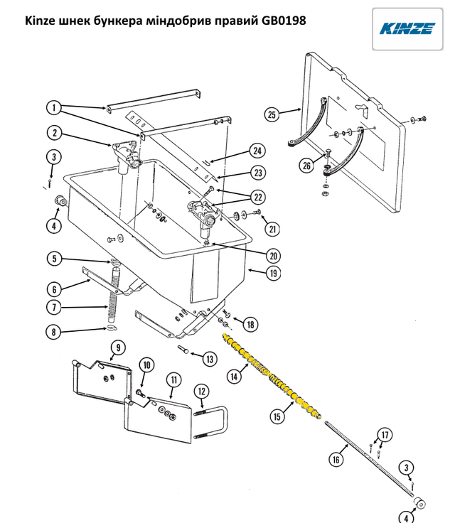 Шнек бункера міндобрив правий GB0198 (поз14)