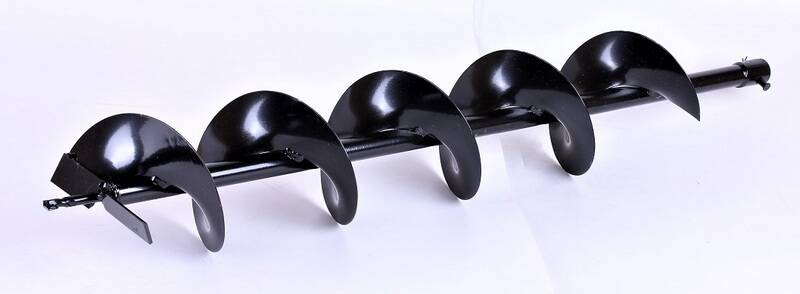 Шнек L1000 мм, диаметр 150 мм ТАТА для мотобура — данный шнек подходит к большинству двигателей с выходным валом диаметром 20 мм. На конце шнека приварены 2 лопасти ножа, которые срезают слои почвы выталкивая их из отверстия. Используется для бурения отверстий, наиболее распространенное применение — бурение лунок под опоры забора, столбиков под виноград, строительных работ.