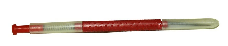 Штапель опускаем в саму ячейку и аккуратно нажимаем на пружинный толкатель. Лопатка шпателя скользит по дну этой ячейки и в процессе легко подбирает личинку вместе с маточным молочком (при этом личинка остается практически недвижимой в состоянии покоя). Далее удерживает содержимое перед вашим переносом в специальную мисочку.