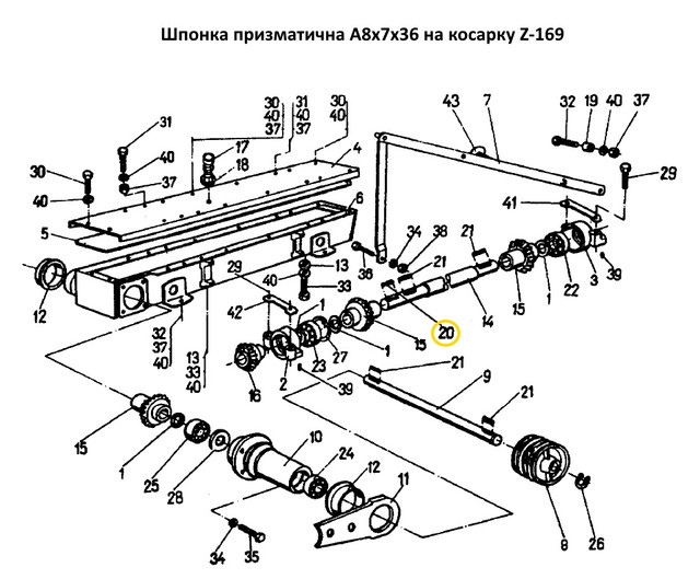 Шпонка призматична А8х7х36 на польську косарку Z-169, PN-70/M-85005