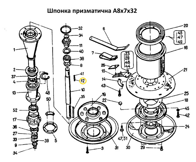 Шпонка призматична А8х7х32 на косарку Z-169