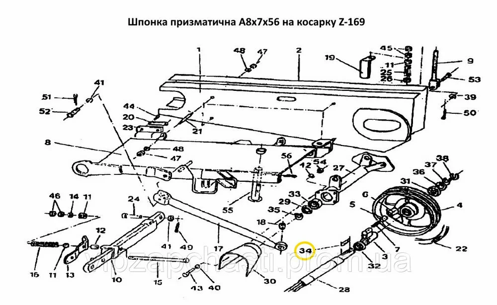 34 - Призматический шпунт A8x7x56 - PN-70/M-85005 - 1