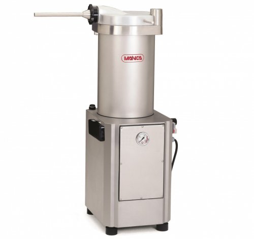 Гидравлические шприцы могут применяться в колбасных цехах, супермаркетах и мясных лавках для наполнения натуральной либо искусственной колбасной оболочки. Процесс наполнения происходит за счет вытеснения фарша поршнем, благодаря чему структура сырья не меняется и остается в первоначальном состоянии. Герметичное исполнение поршня и рабочей камеры предотвращает попадание масла в продукт. Для проведения мойки и дезинфекции внутреннего пространства поршень легко удаляется из шприца. Управление шприцем происходит при помощи подколенного переключателя, а скорость подачи сырья можно регулировать в зависимости от необходимой производительности. Для производства сосисок или сарделек можно дополнительно оснастить шприц автоматическим дозатором-перекрутчиком. Для контроля давления гидравлической системы оборудование оснащено манометром.