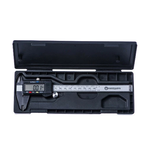 Электронный штангенциркуль очень прост в использовании, а благодаря чётким гравированным шкалам результаты измерений легко и точно считываются. Цифровой дисплей дополнительно повышает удобство, обеспечивая быстрый доступ к результатам измерений. Оснащён фиксирующим винтом для зажима губок, что позволяет сохранять полученный размер. Поставляется в пластиковом футляре, который защищает инструмент от повреждений и облегчает хранение и транспортировку.