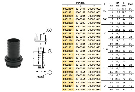 штуцер, патрубок, переходник, фитинг на опрыскиватель, фирма GeoLine (Италия)