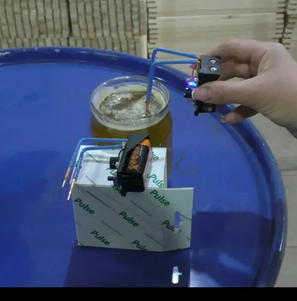 Устройство применяется для контроля налива мёда в ёмкость, используется для избежания утечки мёда через края ёмкости.